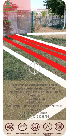 Telefonun kamerasını kaldırdığınız anda gömülü kablolar gerçekte bulundukları koordinatlarda, ölçeklendirilmiş 3-B hatlar ve renk kodlu kılıflar halinde görünür. Uygulama, cihazın sensör verilerini hassas GNSS alıcısından gelen koordinatlarla birleştirerek sahneyi her karede yenileyerek yüksek doğruluklu veri görselleştirme sağlar. |